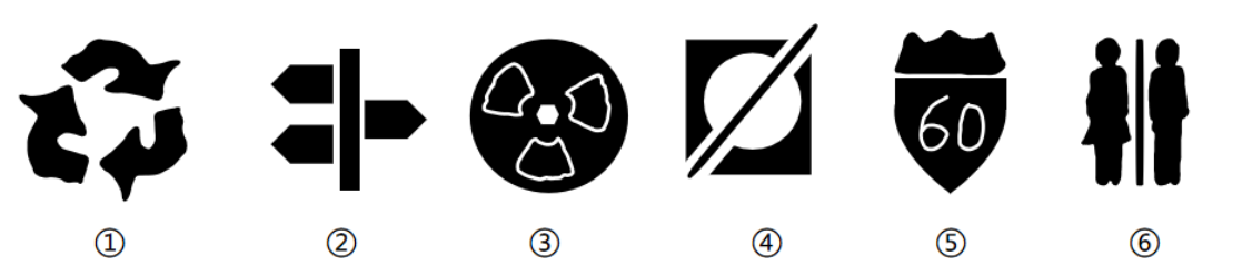把下面的图形分为两类,使每一类图形都有各自的共同特征或规律,分类正确的一项是( )。